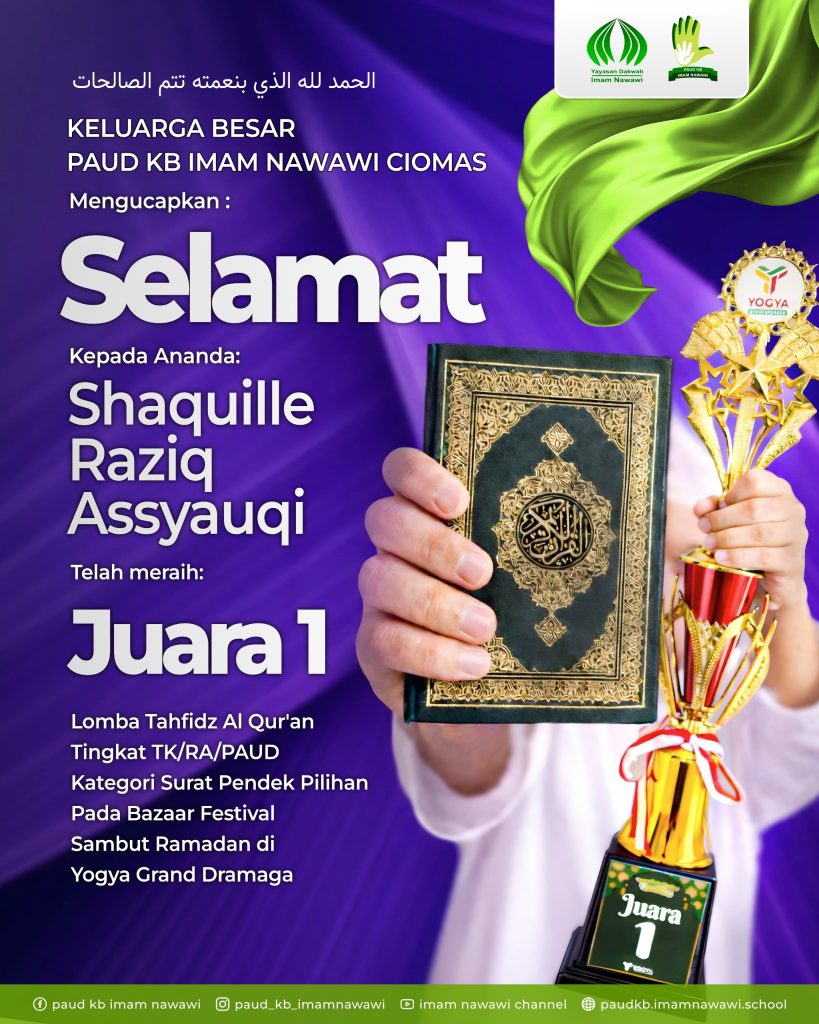 Prestasi ini menjadi kebanggaan bagi keluarga besar PAUD KB Imam Nawawi Ciomas.
